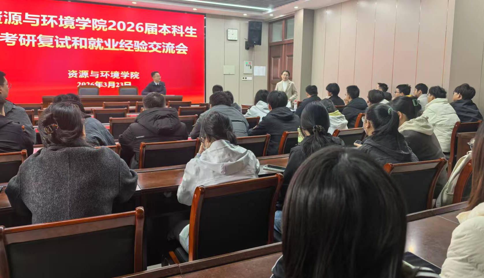 为进一步做好2026届毕业生升学与就业指导工作,帮助本科生精准把握考研复试形势、熟悉调剂流程及提升就业竞争力,近日,我院土壤环境系组织召开考研复试和就业经验交流会。系主任马双龙、毕业生班主任等专业教师、2026届环境生态工程专业本科生共同参加。