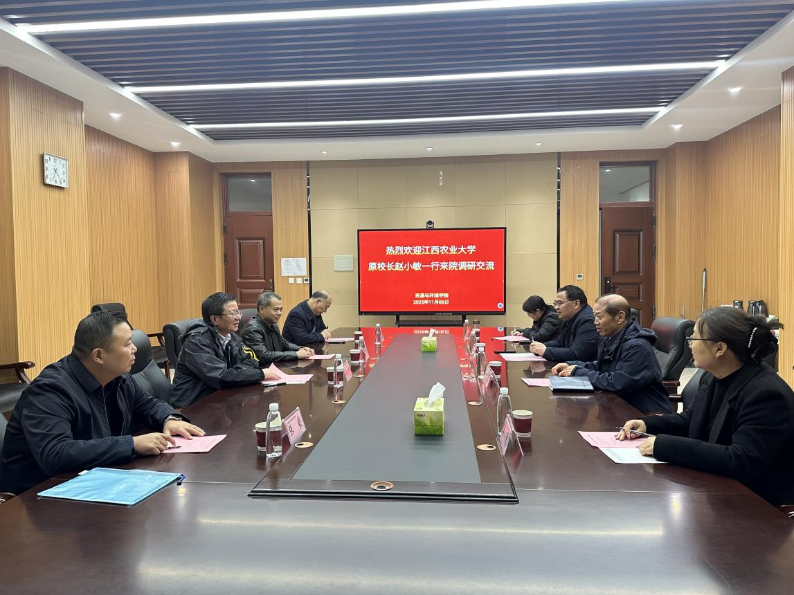 11月6日下午,江西农业大学原校长赵小敏、国土资源与环境学院党委书记肖明一行4人来我院调研交流,河南农业大学原校长介晓磊、院长王宜伦等出席座谈会。