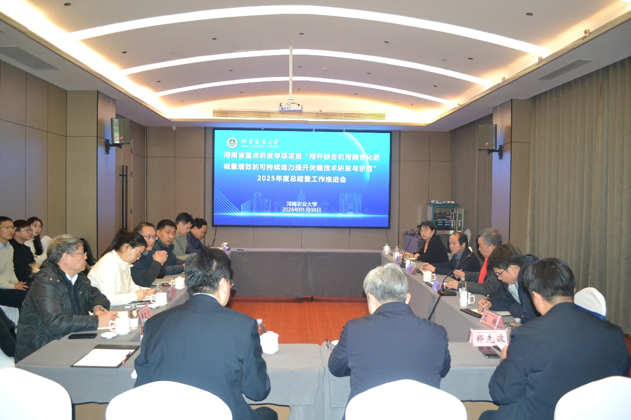 2026年1月8日,河南省重点研发专项项目“秸秆综合利用耦合化肥减量增效的可持续地力提升关键技术研发与示范”2025年度总结暨工作推进会在郑州召开。河南省科技厅现代农业农村科技处李永恩处长、河南农业大学科技处郑先波处长、项目负责人刘红恩教授、各课题主持人及骨干成员参加会议。会议特邀华中农业大学胡承孝教授、中国科学院南京土壤研究所朱安宁研究员、中国农业科学院农业资源与农业区划研究所艾超研究员、河南省土壤肥料站葛树春研究员等知名专家组成专家组莅临指导。会议开幕式由刘红恩教授主持。