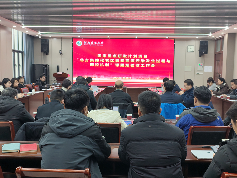 2026年1月31日,“十四五”国家重点研发计划项目“北方集约化农区氮素面源污染发生过程与调控机制”课题绩效评价预验收会在河南农业大学龙子湖校区顺利召开。会议邀请了中国农业科学院农业资源与农业区划研究所白由路研究员、何萍研究员,河南省土壤肥料站葛树春研究员组成预验收专家组,由白由路研究员担任组长。项目首席介晓磊教授、课题负责人及课题骨干共计60余人参加了本次会议。