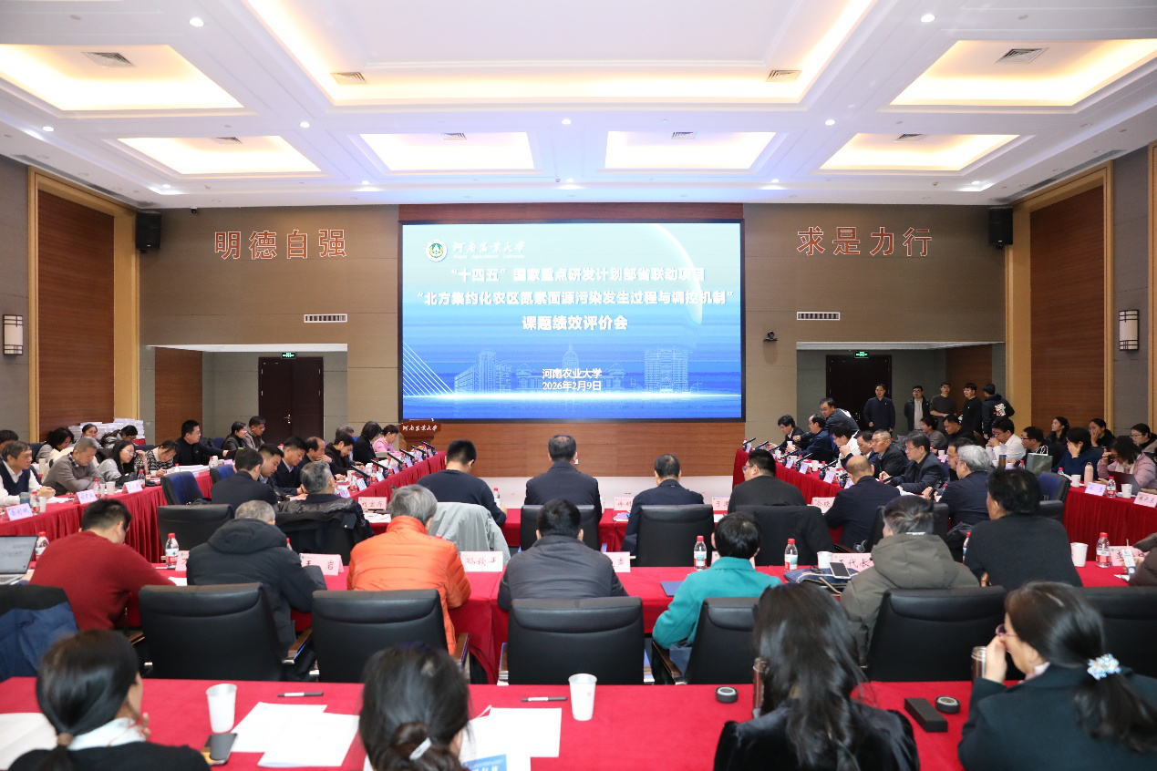 2026年2月9日,“十四五”国家重点研发计划部省联动项目“北方集约化农区氮素面源污染发生过程与调控机制”课题绩效评价会在河南农业大学顺利召开。本次会议由农业农村部科技发展中心组织,项目牵头单位河南农业大学承办。农业农村部科技发展中心项目监督处专员于建强、项目管理一处专员高艺,河南省科技厅党组成员、副厅长何守法,河南省科技厅现代农业农村科技处处长李永恩,河南农业大学副校长赵鹏,校科技处处长郑先波,资源与环境学院院长王宜伦等出席会议。项目负责人介晓磊教授,各课题负责人樊向阳、岳艳军、周其文、程立君及项目骨干成员共80余人参加了会议。
