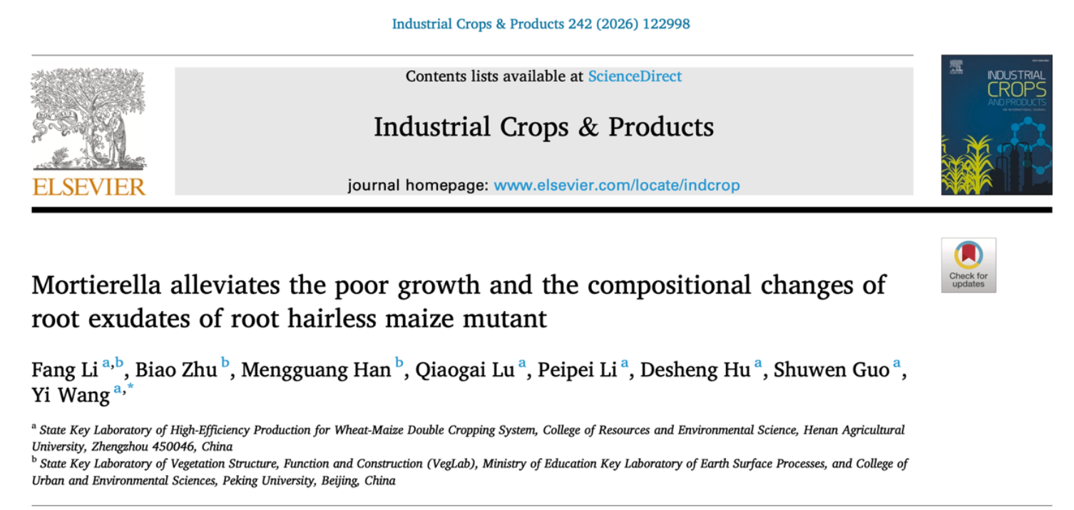 近日,我院农田生产力绿色调控与功能性肥料团队的研究成果“Mortierella alleviates the poor growth and the compositional changes of root exudates of root hairless maize mutant”在作物领域国际著名期刊《Industrial Crops & Products》(中科院一区,IF 5.6)在线发表。该研究在田间条件下,整合微生物组、转录组与代谢组多组学技术,揭示了根际微生物对作物遗传缺陷的功能补偿机制,明确了被孢霉(