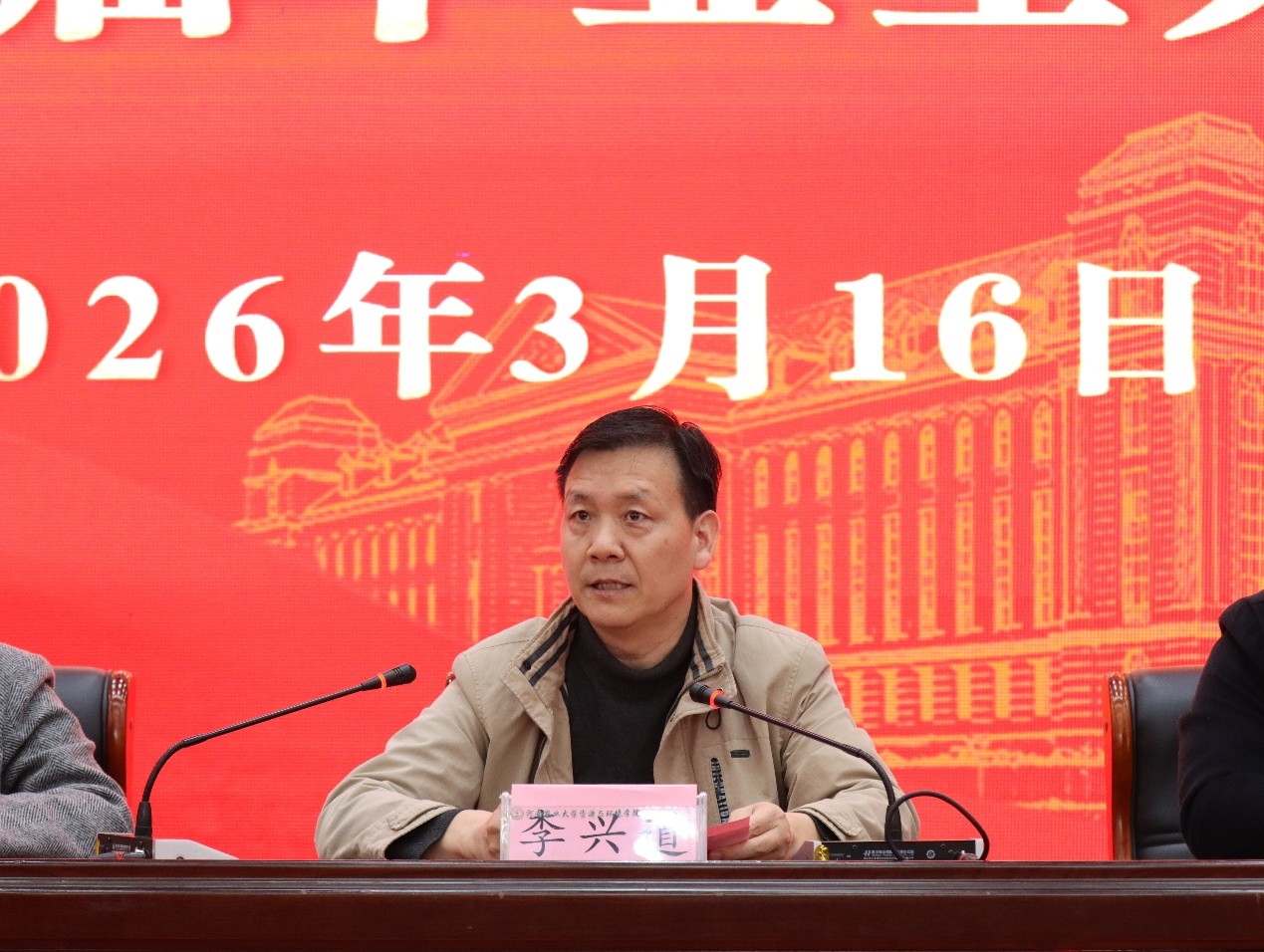 学院党委书记李兴道从树立正确就业观、尝试多元化就业、坦然面对得与失等角度,勉励大家以积极的心态、务实的行动,主动作为抢抓就业机遇,勇敢奔赴人生新程。同时提醒大家仔细甄别招聘信息,防范各类就业陷阱,守护人身财产安全。