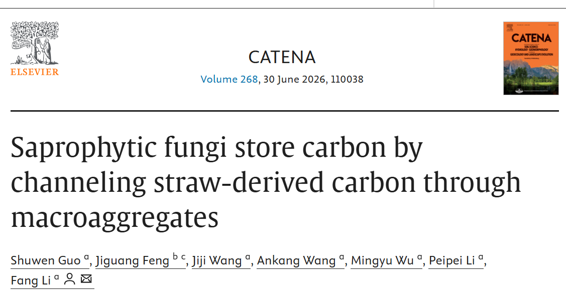 近日,我院农田生产力绿色调控与功能性肥料团队的研究成果“Saprophytic fungi store carbon by channeling straw-derived carbon through macroaggregates”在土壤科学领域的国际期刊《CATENA》(新锐分区一区(原中科院一区)、JCR一区,IF 5.7)在线发表。首次揭示了腐生真菌在秸秆还田下通过团聚化过程驱动秸秆碳固持的双重机制,通过同位素标记技术明确了低等真菌与高等真菌分别通过矿物结合有机碳和颗粒有机碳两条途径促进大团聚体形成及秸秆碳固存机制,在长时序尺度下证明了土壤团聚体形成的“自下而上”与“自上而下”理论。通过解析不同真菌类群对秸秆碳在团聚体中分配路径的差异化调控,为定向构建促进土壤固碳与结构稳定的功能菌群提供了理论依据。