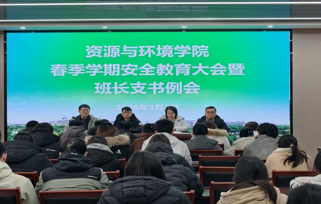 为强化校园安全教育,加强学生干部队伍建设,资源与环境学院于3月2日在力行楼338会议室召开春季学期安全教育大会暨班长支书例会,正科级组织员余月圆,院团委书记黄春萌,院团委副书记邓晓铮,团委老师张顺涛,各年级学生干部共同参与会议。