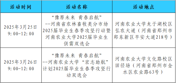 在此,诚挚邀请2025届全省农林畜牧类毕业生及“宏志助航”计划参训高校学员积极参会,兄弟院校毕业生参会可由本校就业部门老师带队,提前做好入校登记,服从现场工作人员安排,按时有序入场。同时,也特别邀请所有在校各年级同学积极参会,提前找准自己的奋斗目标,提前精准储备职业竞争力。